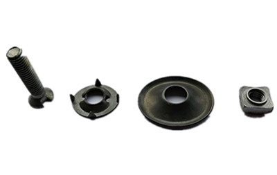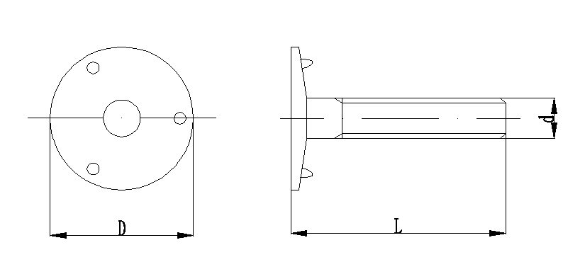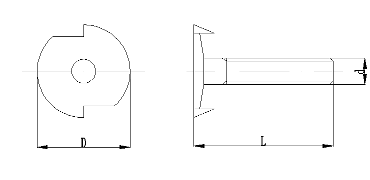 特 点:头部螺杆侧端面有三个凸起尖牙,在旋紧螺母时,可防止螺钉跟转。适用于物料容重轻,线速度低的塑料畚斗的安装,是经济适用型的螺钉。