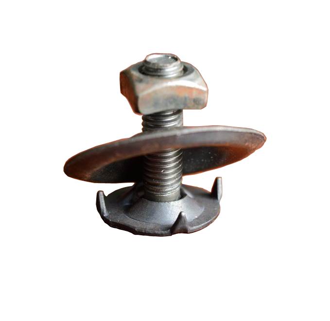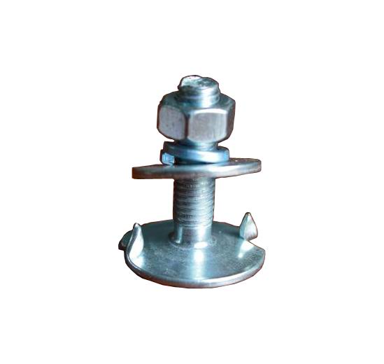 特 点:头部螺杆侧端面有两个凸起尖牙,在旋紧螺母时,尖牙可容易地卡入提升带,防止螺钉跟转效果好。适用于物料容重大,线速度较高的塑料畚斗和钢质畚斗的安装,特别适用于大容量畚头的安装,在设备运转过程中能承受较大的冲击负载。