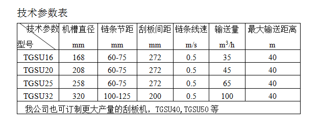TGSU系列自清式(U)型刮板输送机是一种自清式水平连续输送设备,主要用与粮食仓库、码头、粮食加工厂、轻工、酿造等行业输送各种原料,半成品粮等小颗粒或粉状物料。不宜输送容重大于